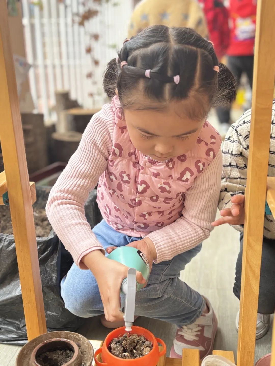在这个充满生机的日子里,孩子们还带着属于自己的小小种子,兴致勃勃地来到植物角。