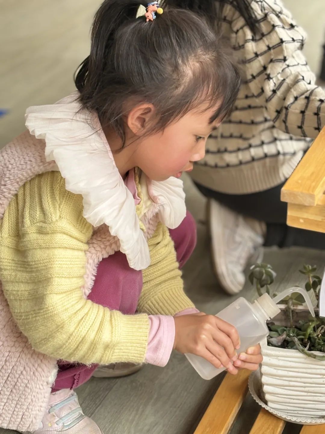 播种只是开始,照护植物更是一份责任。孩子们观察自己带来的小植物,看看它们是否需要浇水、施肥。他们学会了如何照料植物,用稚嫩的小手轻轻为植物浇水,清理落叶和杂草。在这个过程中,孩子们不仅培养了责任感,也学会了珍惜生命,尊重自然。