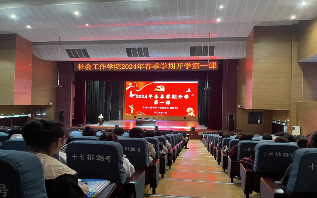3月14日,为了深入学习贯彻习近平总书记重要讲话精神,加强对学生爱国主义教育的引导和教育,社会工作学院全体师生在音乐厅,开展“传承红色基因,筑牢爱国之魂”2024春季学期“开学第一课”。校党委委员、副校长张世琴为师生解读学习《中华人民共和国爱国主义教育法》。社会工作学院负责人带领师生重温习近平总书记2019年3月18日重要讲话精神。