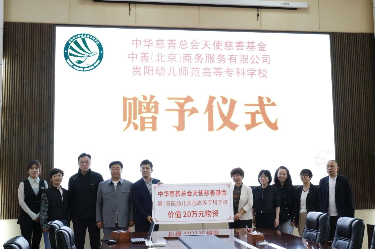在双方领导的共同见证下,贵州中华慈善总会天使慈善基金中善(北京)商务服务有限公司向我校捐赠了价值20余万元的物资。这批物资不仅是对我校教育事业的有力支持,也是对我校社会服务项目的极大鼓舞。