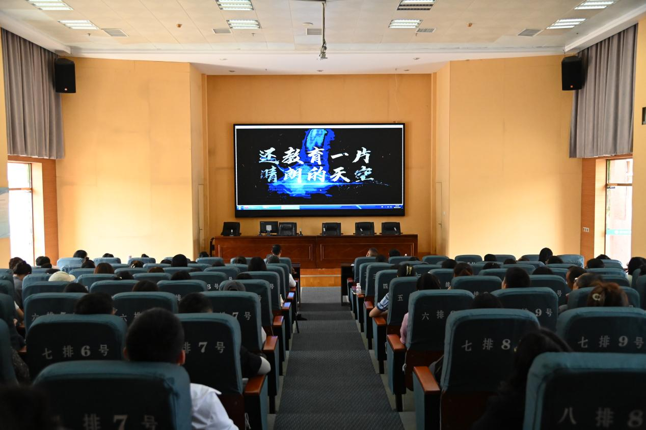 会议集中观看了由贵阳市纪委监委、贵阳市教育局联合制作的警示教育片——《还教育一片晴朗的天空》,通过“身边事”警醒“身边人”,让党员干部、教职员工直观感受纪法威严和违纪违法的惨痛代价,切实增强警示教育的穿透力、震慑力和感染力。