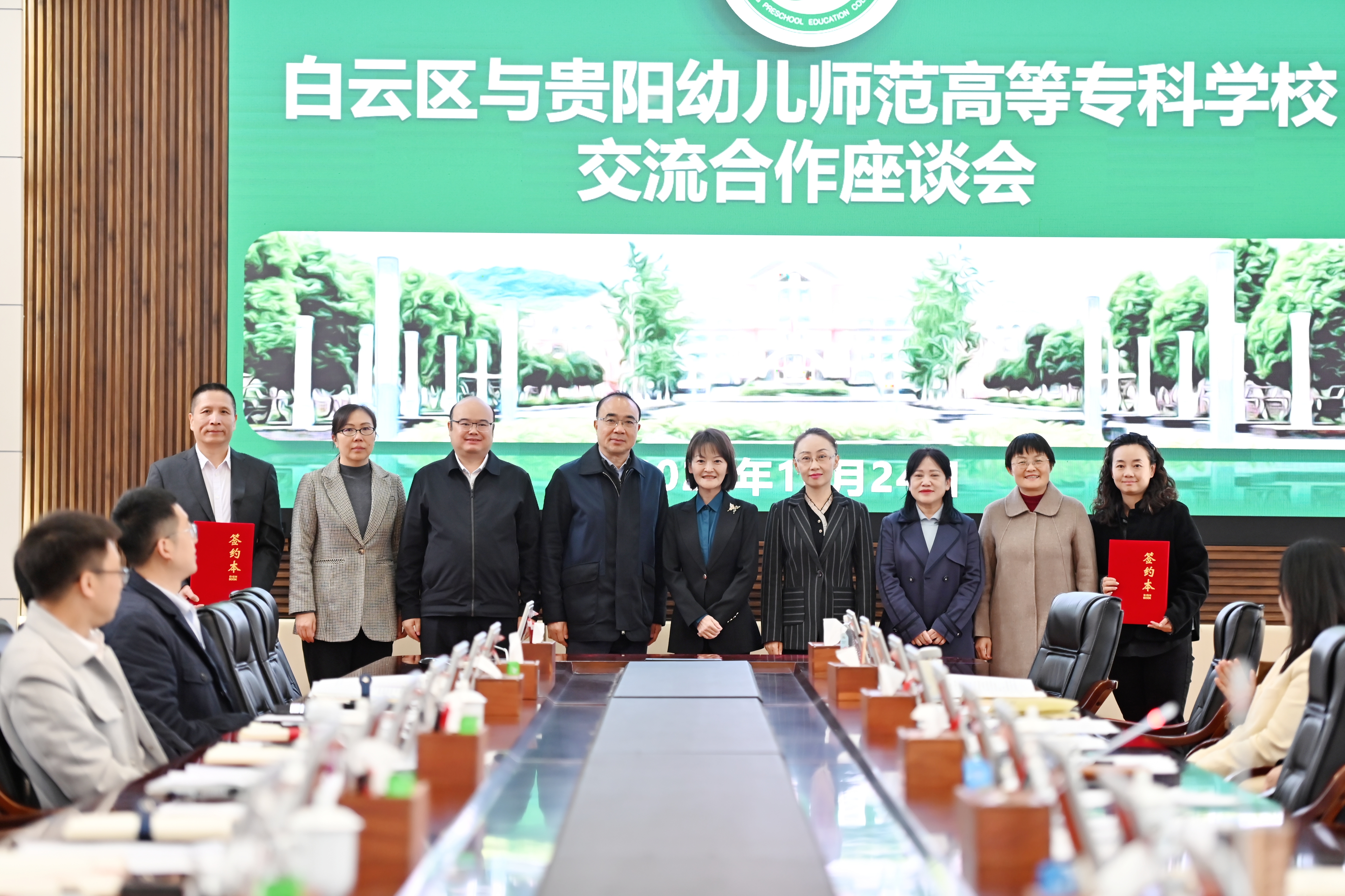 10月24日,白云区与学校召开合作座谈会,并签署战略合作框架协议,为双方深度合作,协同推进教育与社会治理创新按下“加速键”。贵阳市政协副主席、白云区委书记步岚,白云区委副书记刘欢,区政府副区长赵雪以及区委社会工作部、区教育局、区卫生健康局相关负责人,学校党委书记李华荣,党委副书记、校长任洁,党委副书记廖光力,党委委员、副校长潘丽芬,学校相关系部负责人参加会议。会议由任洁主持。