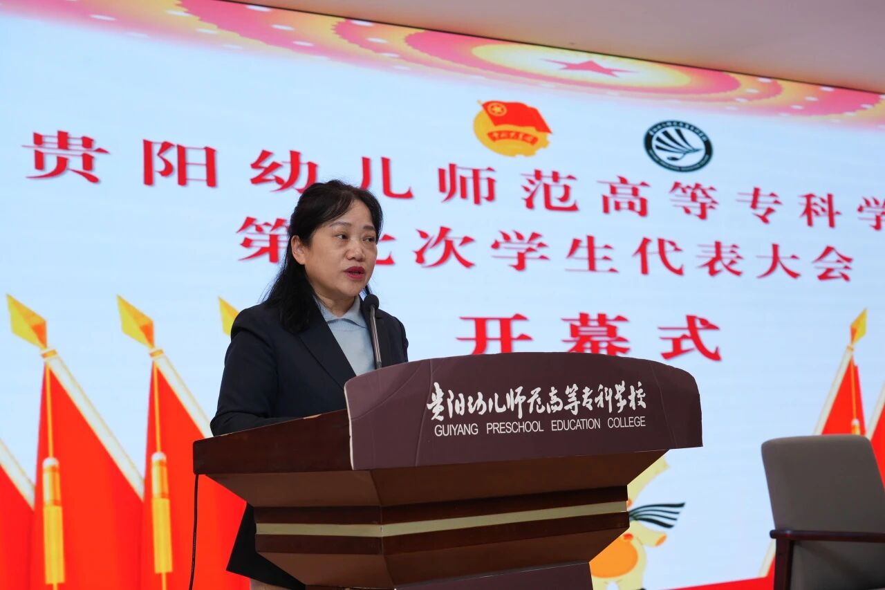 为进一步深化学生民主管理机制,强化学生干部队伍建设,充分发挥学生代表在校园治理中的主体作用,以青春力量赋能校园高质量发展,2025年11月7日,贵阳幼儿师范高等专科学校第七次学生代表大会隆重召开。来自全校各系(部)的154名学生代表齐聚一堂,肩负全体同学的信任与期盼,共商学生发展大计,为学校学生工作的创新推进凝聚共识、擘画蓝图。