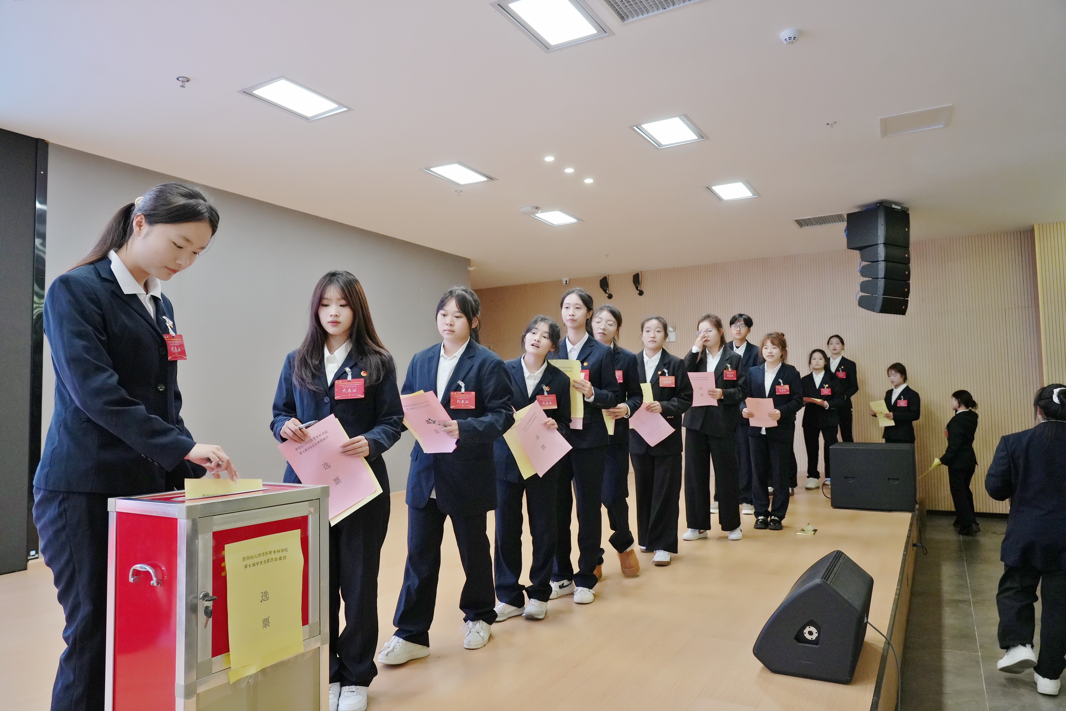 在全体代表的共同见证下,大会进入民主选举环节。现场严格执行监票、计票等规范流程,全体代表以无记名投票方式,郑重行使民主权利,从校、系各级学生组织骨干中选举产生了贵阳幼高专第七届学生会委员,同时黄露露、夏左露、顾光宇三位同学成为新一届校学生会主席团成员,为学校学生工作的接续开展凝聚起新的核心力量。