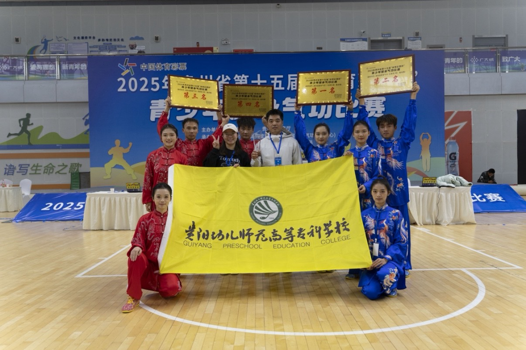 11月14日-11月17日,由贵州省体育局、贵州省教育厅联合举办的2025年贵州省第十五届“体育彩票杯”青少年健身气功比赛在清镇市体育文化公园圆满落幕。我校运动健儿与来自全省43所本科、高职高专院校的318名运动员同场竞技,经过激烈角逐,凭借出色的表现斩获多项殊荣,充分展现我校学子积极向上的精神风貌。彰显了我校长期坚持以“立德树人”为根本任务,推动学校体育高质量发展,助力健康中国目标实现。