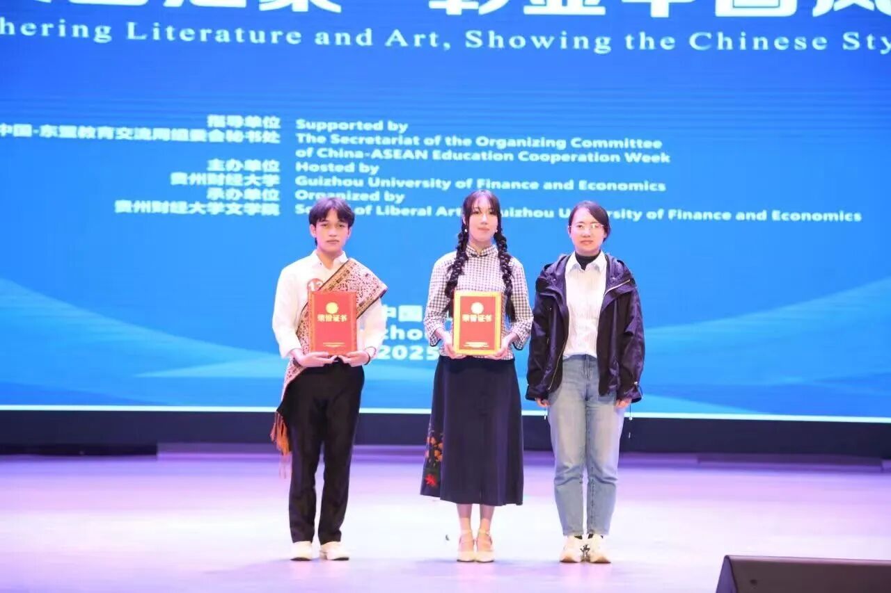 近日,2025中国-东盟教育交流周“文艺汇聚,彰显中国风”比赛决赛圆满落幕。作为本次赛事中唯一一所高职院校,我校国际学生与省内外本科院校国际学生同台竞技,凭借扎实的才艺功底与对中国文化的深刻诠释惊艳赛场,斩获多项荣誉,学校同时获评优秀组织奖。