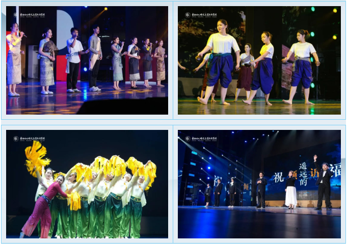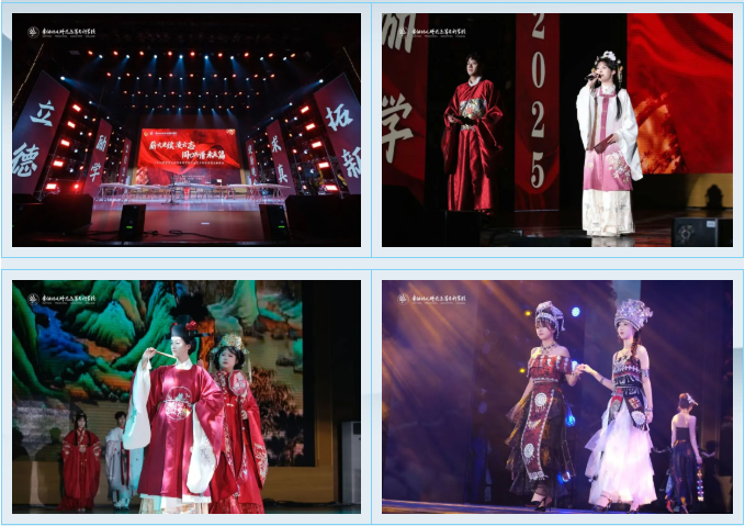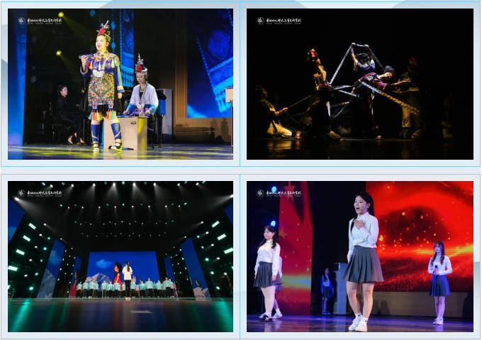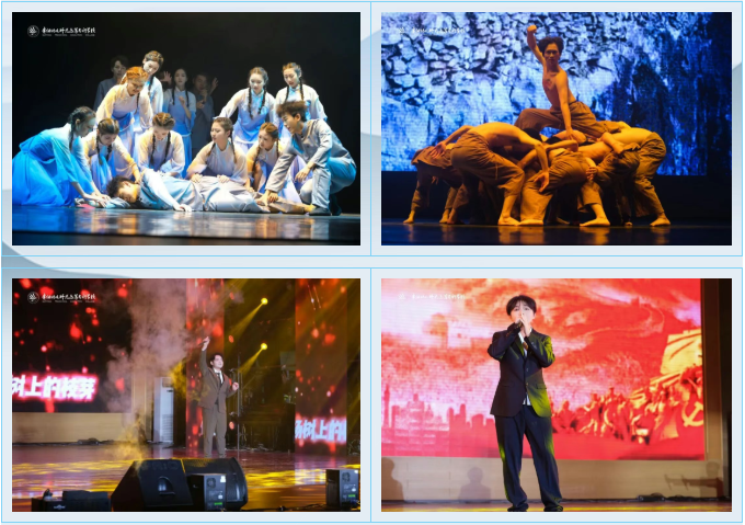 晚会现场,歌舞《国风校友》与舞蹈《一路繁花》以灵动舞姿传递美好期许;合唱《明天会更好》与大合唱《四渡赤水出奇兵》用激昂旋律凝聚奋进力量,将我校师生同心逐梦的坚定信念融入艺术表达,让初心与使命在歌声中传递、在舞姿中绽放。从山河筑梦的古风雅韵,到文脉赓续的厚重坚守,从青春赋艺的活力狂欢,到薪火相传的使命担当,每一个篇章都藏着我们对中华的热爱、对教育的赤诚。