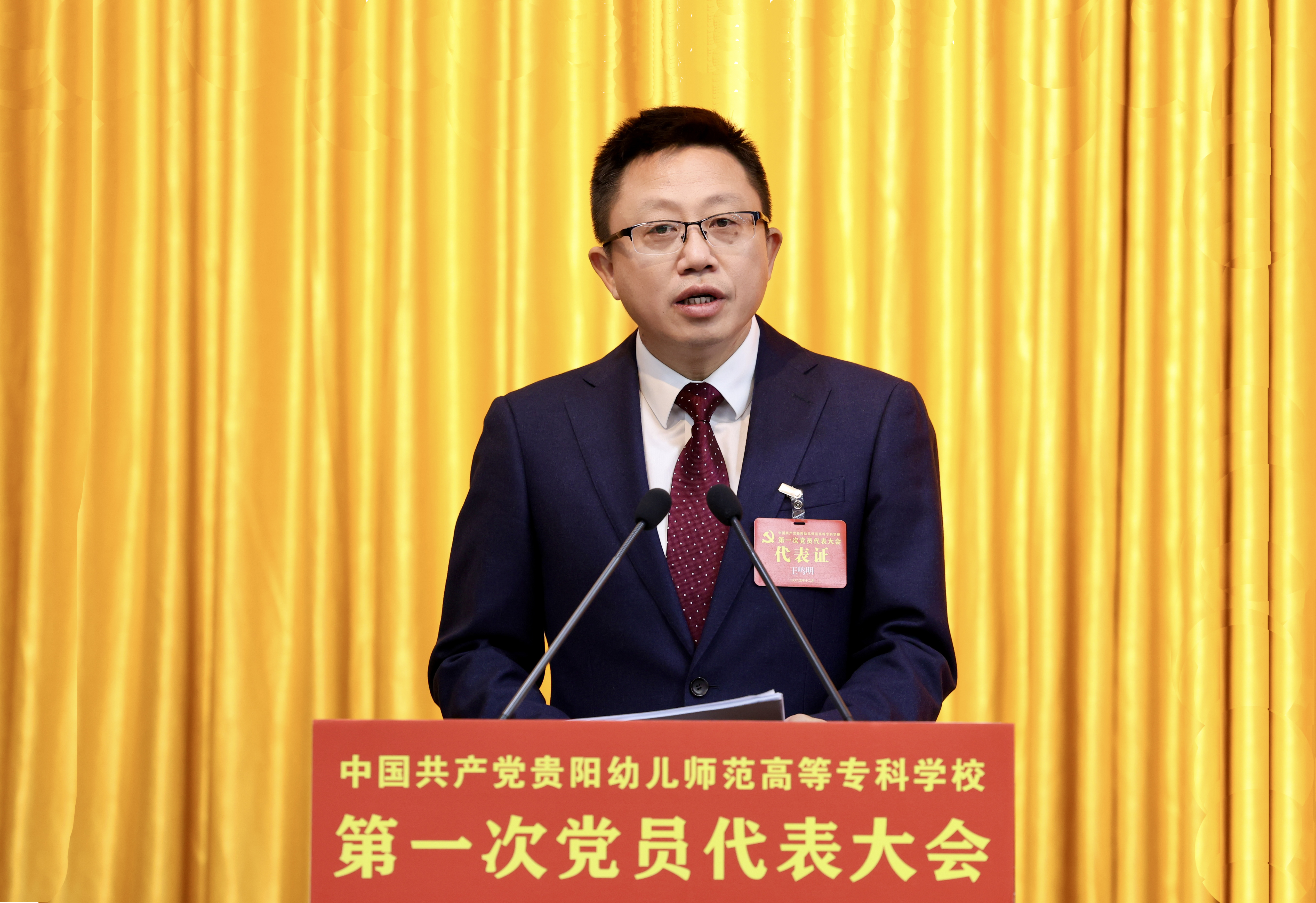 王鸣明同志代表中国共产党贵阳幼儿师范高等专科学校委员会向大会作题为《守正固本 创新提质 奋力谱写学校转型发展新篇章》的工作报告。