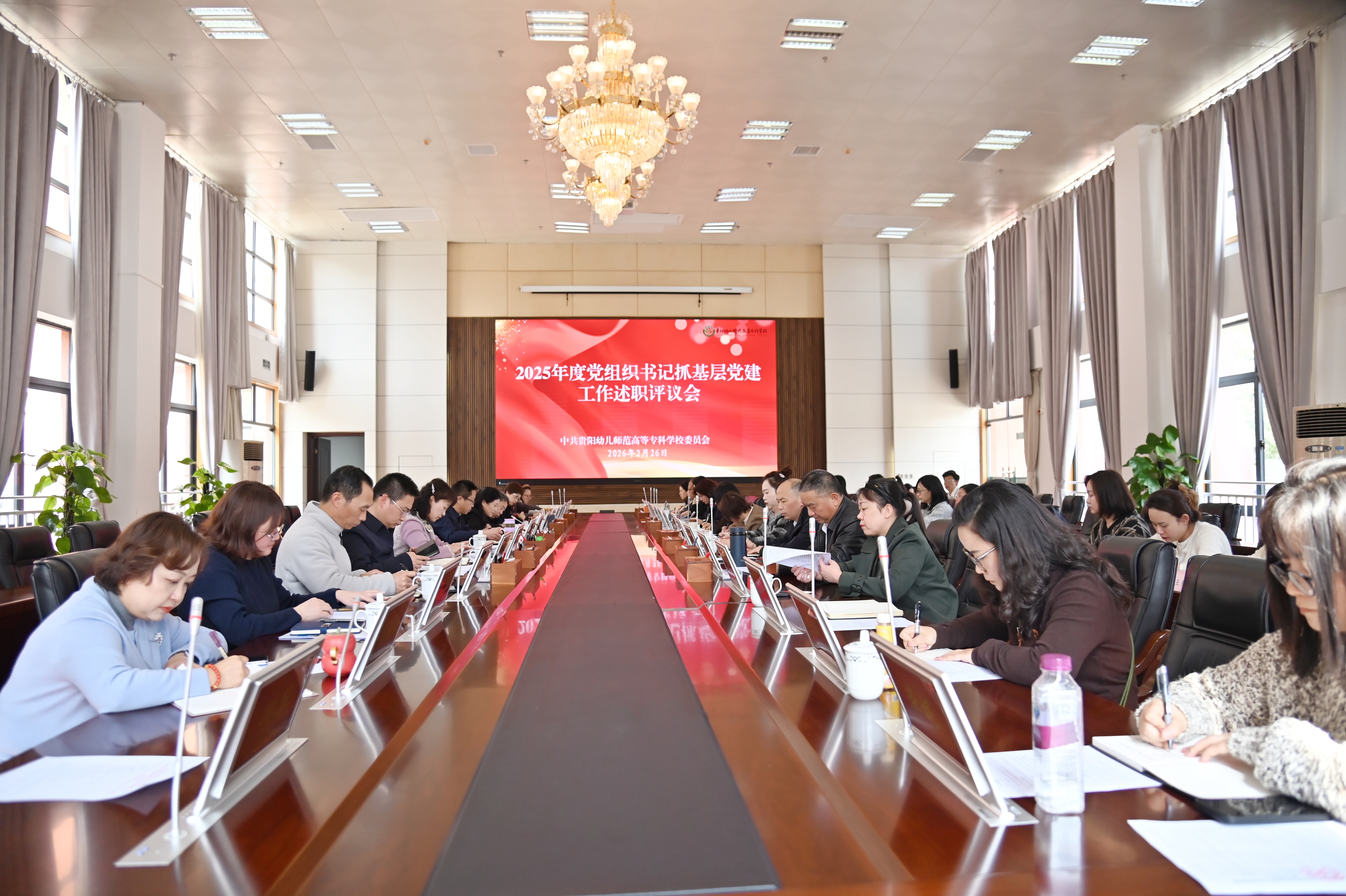 2月26日,校党委召开2025年度党组织书记抓基层党建工作述职评议会议。校党委书记王鸣明主持会议并讲话。校党委领导班子成员、各系部党总支书记及各二级党支部书记、各直属机关党支部书记、专职组织员、“两代表一委员”及基层党员代表、教师代表等参加会议。