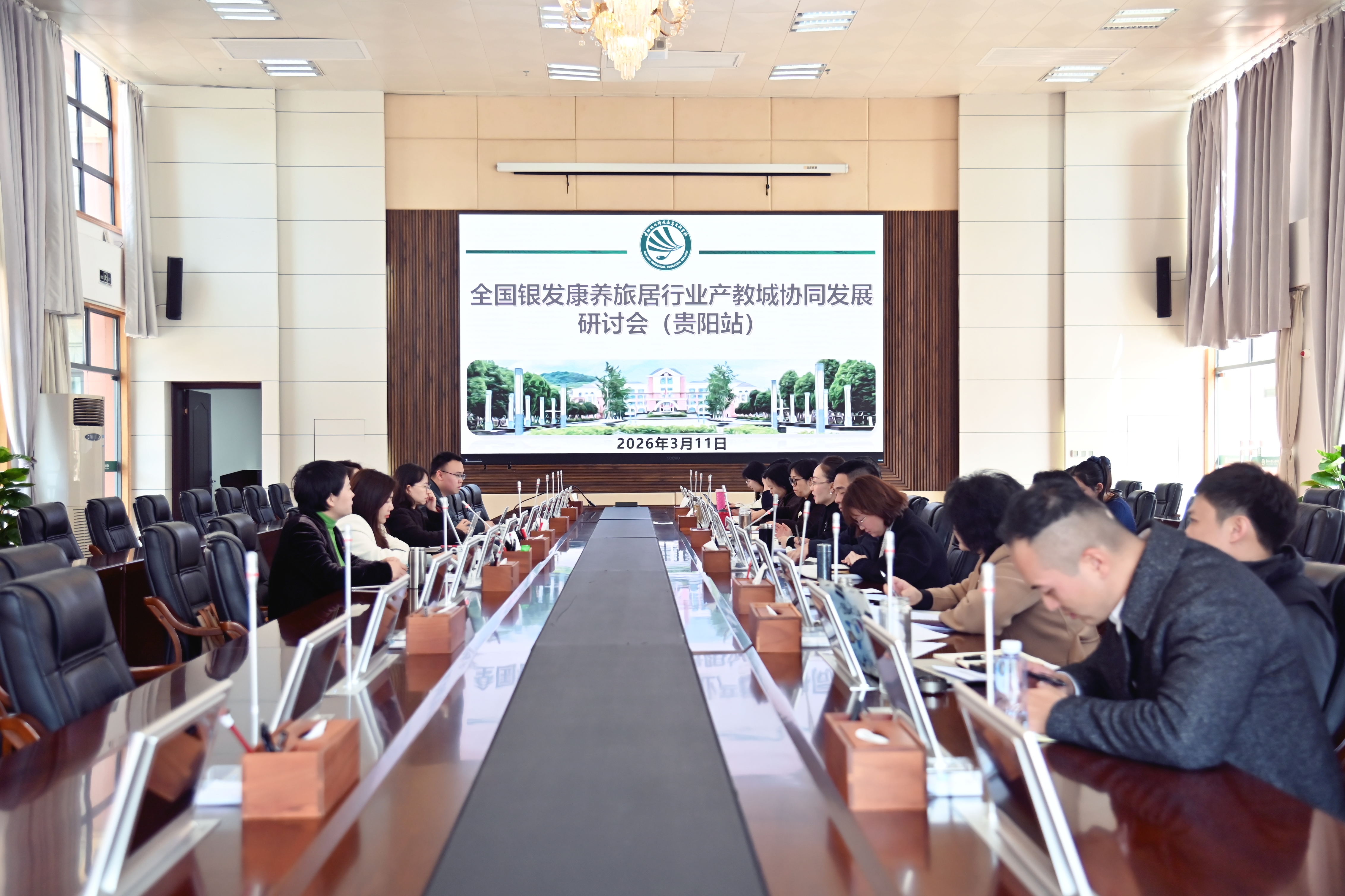 会上,任洁表示,此次座谈会,时机关键、主题鲜明、内容务实,既是一次精准“把脉问诊”,为学校对接银发经济、深化产教融合找准切入点,也是一次高效“传经送宝”,为学校专业转型升级和高质量发展指明了清晰方向。她强调,当前人口结构变化持续推进,银发经济加速崛起,这既是重大发展机遇,也是学校服务社会的重要使命。学校将始终坚守“立足贵阳、服务贵州、辐射西南”的办学定位,主动对接银龄共同体建设需求,将“一老一小”协同关怀理念,深度融入学前教育、社会工作、艺术康养等优势专业建设,让专业发展更贴合银发产业实际需求。她指出,积极参与并牵头推动银发康养旅居领域的产教融合,既是学校服务国家银发经济发展战略、回应社会养老服务需求的必然选择,也是深化与共同体合作、实现校地共建、校企共赢的关键路径。学校将抢抓“十五五”规划编制机遇,以“开局即冲刺”的奋进姿态,督促各相关部门认真梳理与共同体、同程旅行等企业的合作需求,建立常态化沟通对接机制,细化合作方案、明确责任分工,推动产教融合新理念落地生根、新项目见行见效,助力银龄事业高质量发展。