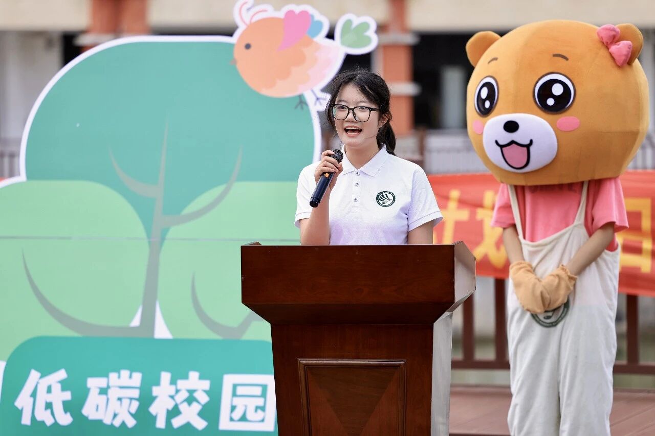 学生代表25级养老1班王梓华同学发言真挚恳切,许下爱绿护绿、用心守护的郑重承诺,展现幼专学子践行生态责任、传递绿色希望的青春担当。