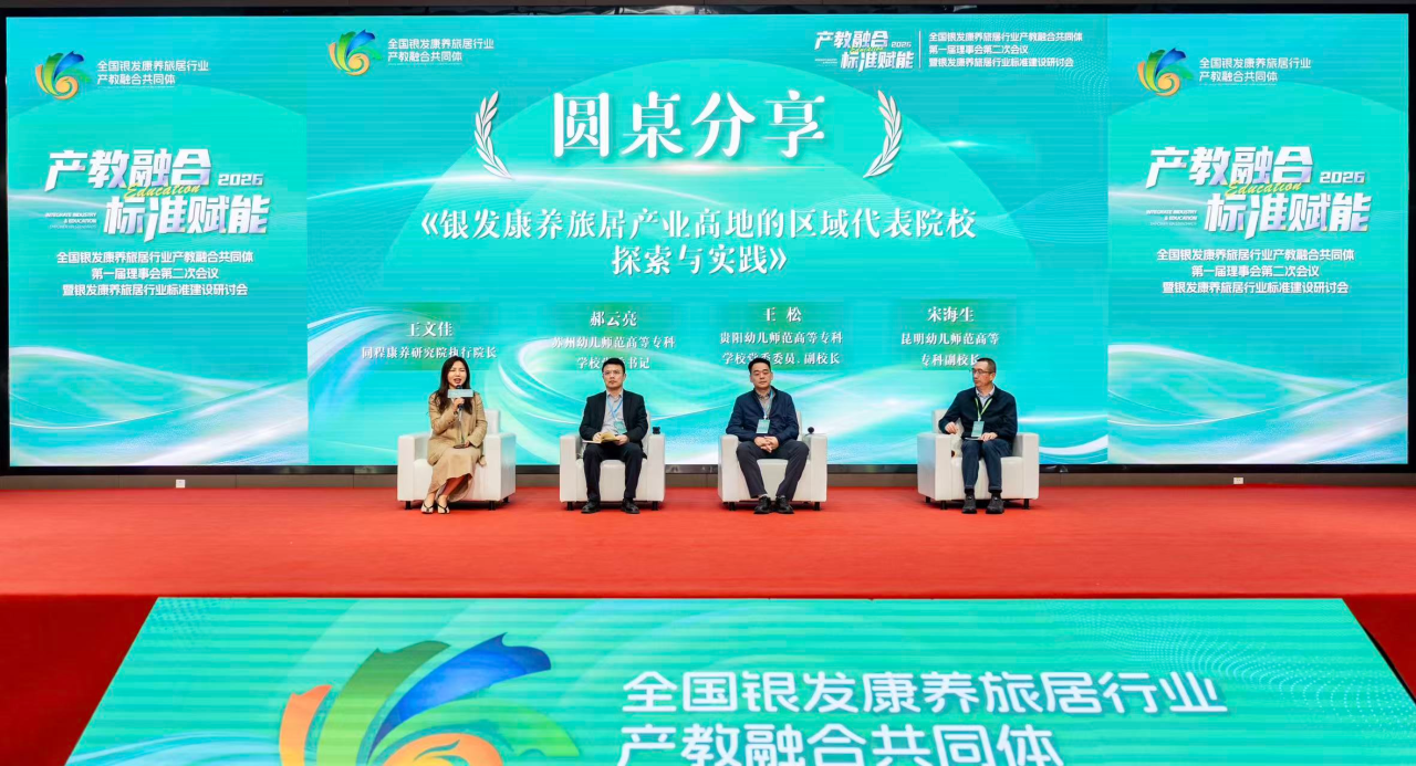 会议围绕“以产教融合破局 以人才赋能提质”主题,部署2026年工作重点,发布《银发康养旅居行业岗位能力图谱》等成果,启动区域银发康养旅居现代产业学院及开放型产教融合实践中心建设,搭建政校企协同育人平台。