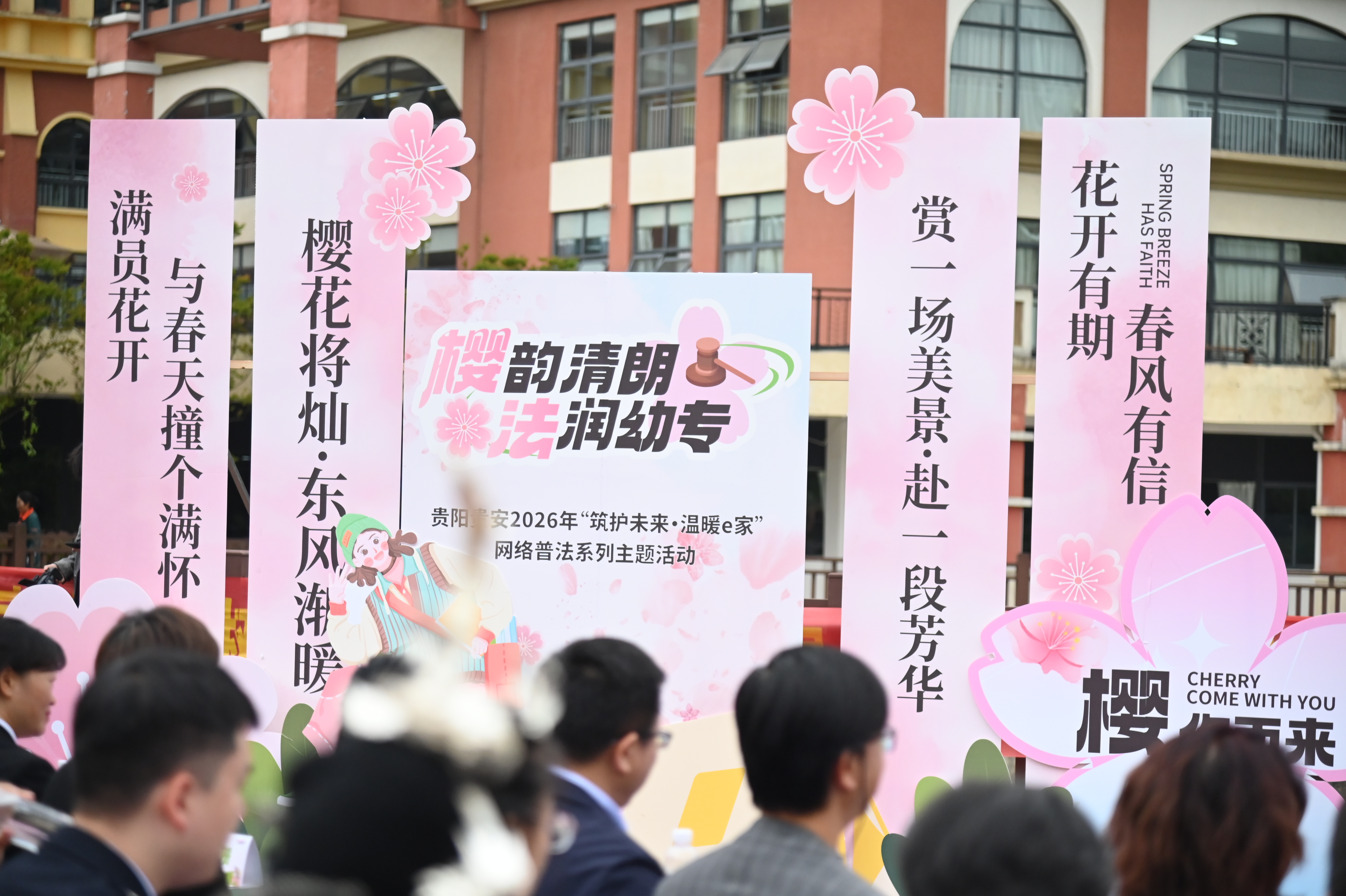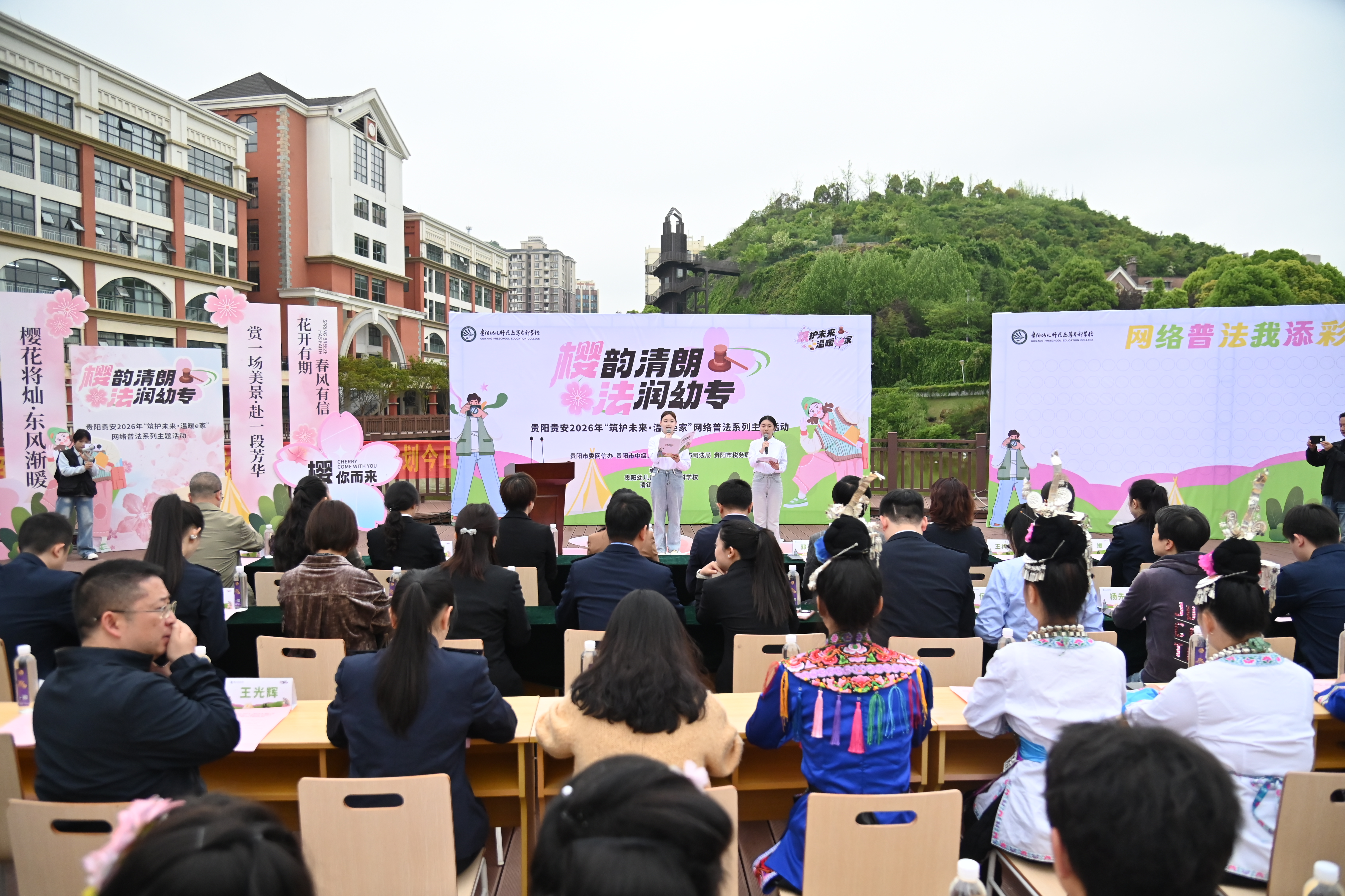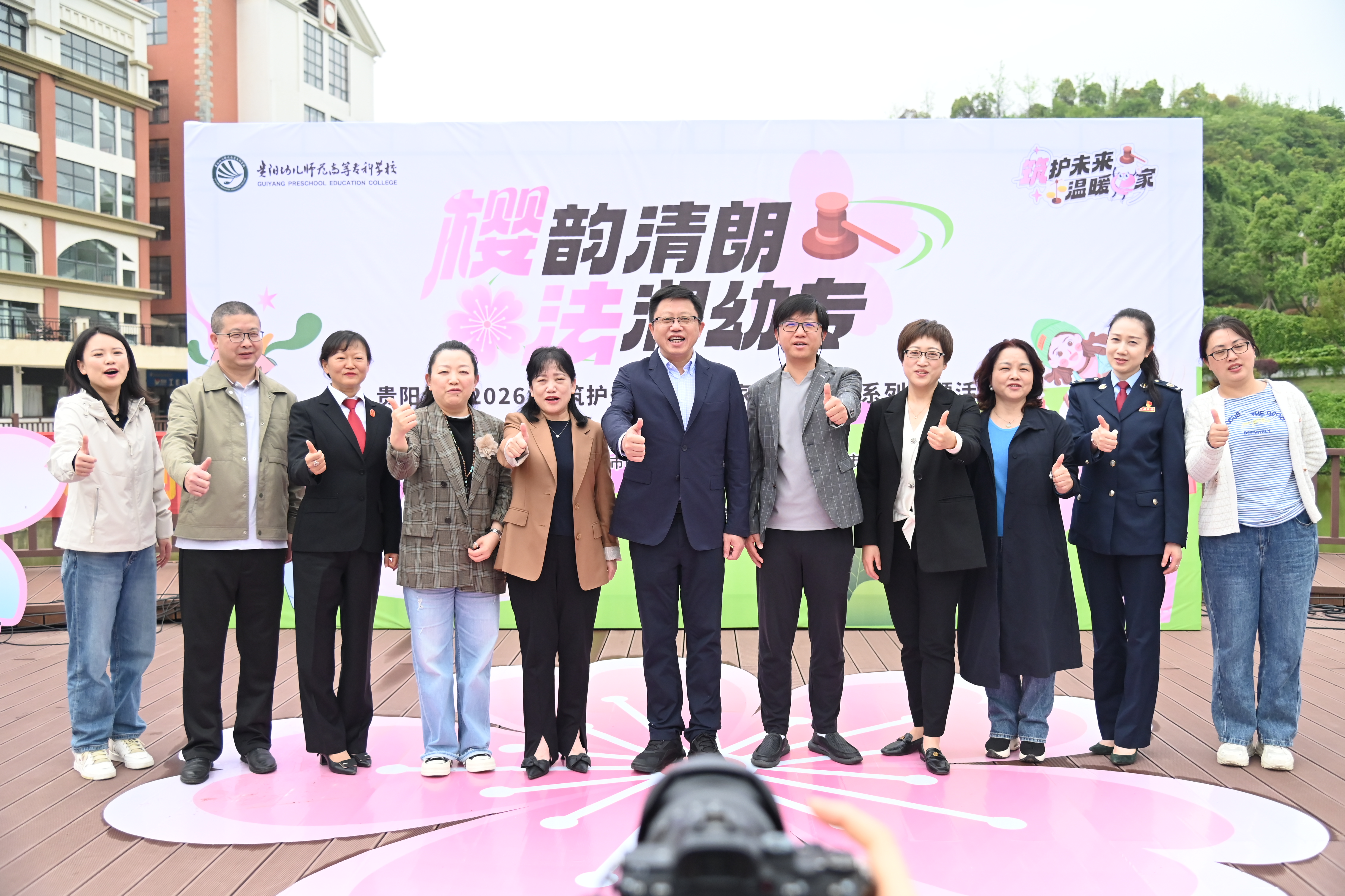 4月15日,贵阳贵安2026年“筑护未来·温暖e家”系列活动——“樱韵清朗 法润幼专”网络普法主题活动在我校举行。活动由贵阳市委网信办指导,贵阳市中级人民法院、贵阳市司法局、贵阳市税务局联合主办,贵阳幼儿师范高等专科学校、清镇市委网信办共同承办,面向师生开展沉浸式、互动式网络法治宣传教育。