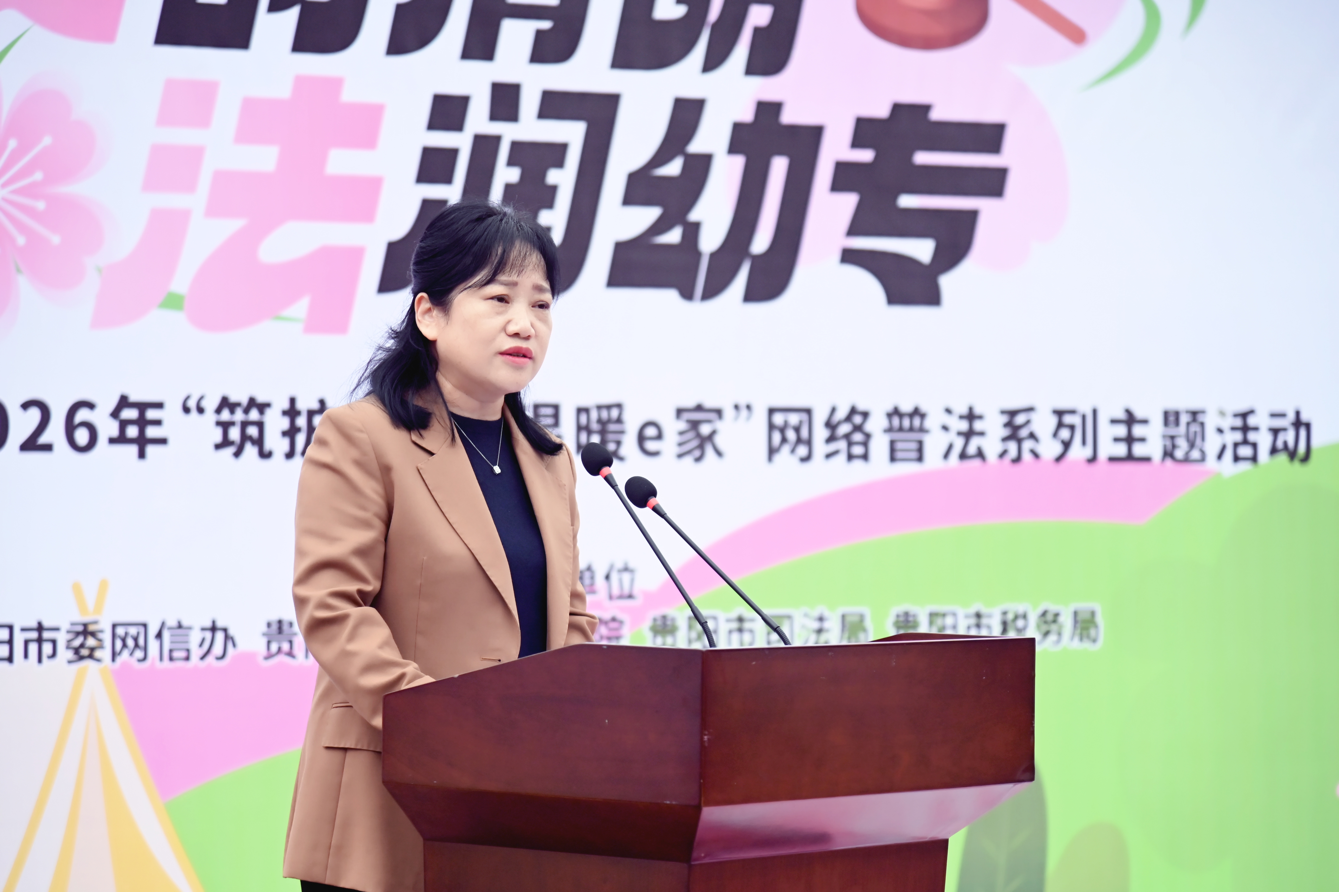 活动现场,王鸣明宣布贵阳贵安2026年“筑护未来・温暖e家”——“樱韵清朗 法润幼专”网络普法志愿者招募仪式正式启动。